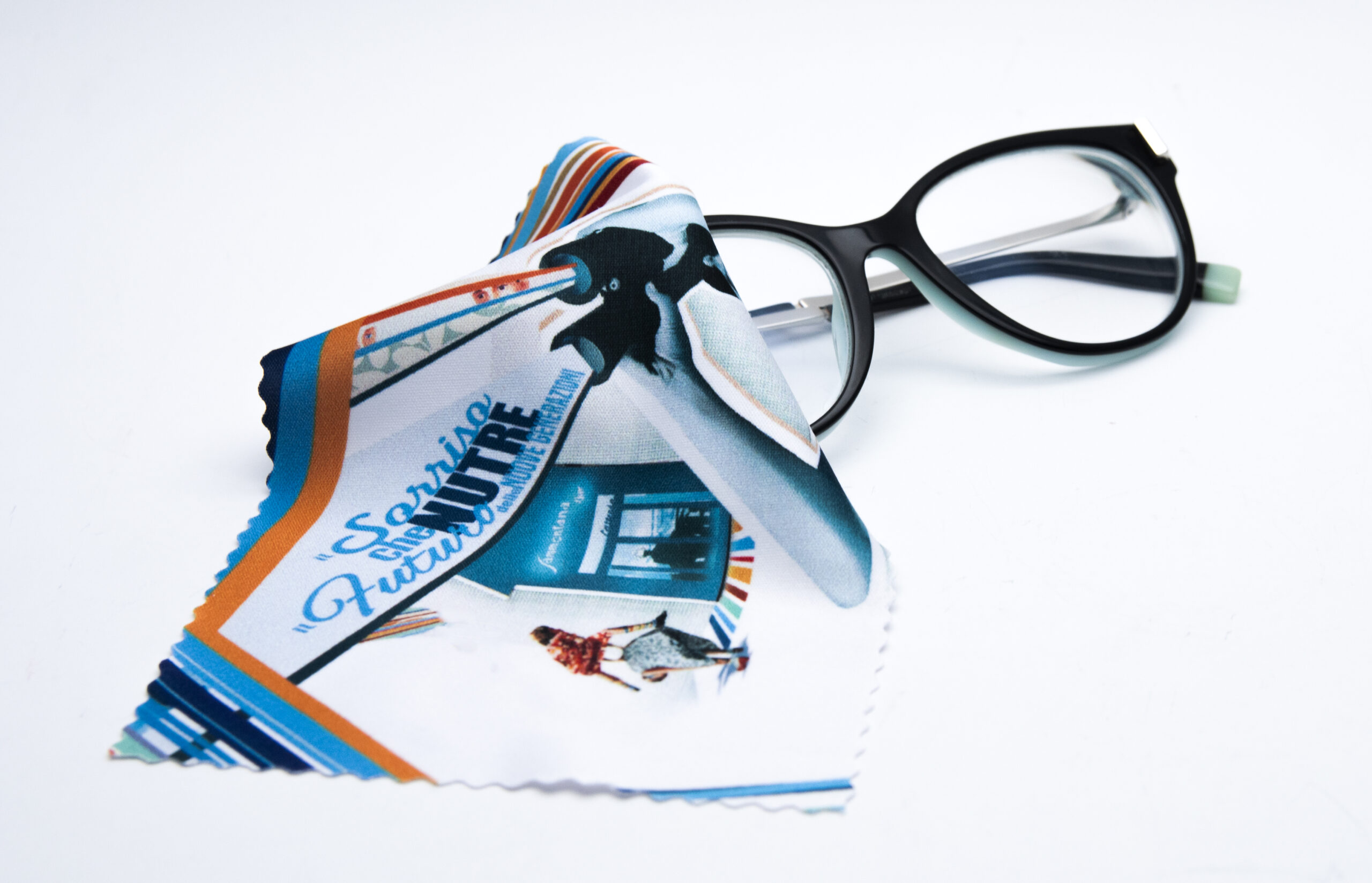 Today’s society increasingly demands “personality,” and the supply of custom eyewear accessories does more than just expand practical functionality—it adds a distinct touch of style and originality. From eyewear retainers and cords to protective cases and microfiber cloths, the wide range of options allows end-users to adapt their glasses to their lifestyle needs while enabling businesses to effectively promote their brand. While many complementary items exist, custom eyewear accessories with a company logo are an ideal choice for keeping the focus on your business. Precisely because of their utility, these accessories are not thrown away; on the contrary, they are kept and used every day. Thanks to the experience gained in sublimation transfer printing, we provide eyewear accessories customised with any graphic design. We use carefully selected, eco-friendly materials to offer added value in terms of both brand visibility and sustainability. Our passion, experience, and attention to detail allow us to provide promotional products while always respecting the client’s brand image. In this category, you can find: Eyewear cords and retainers, Glasses cases in various shapes and materials, Cleaning cloths in various sizes. Tutti questi articoli sono prodotti utilizzando materiali 100% riciclati.