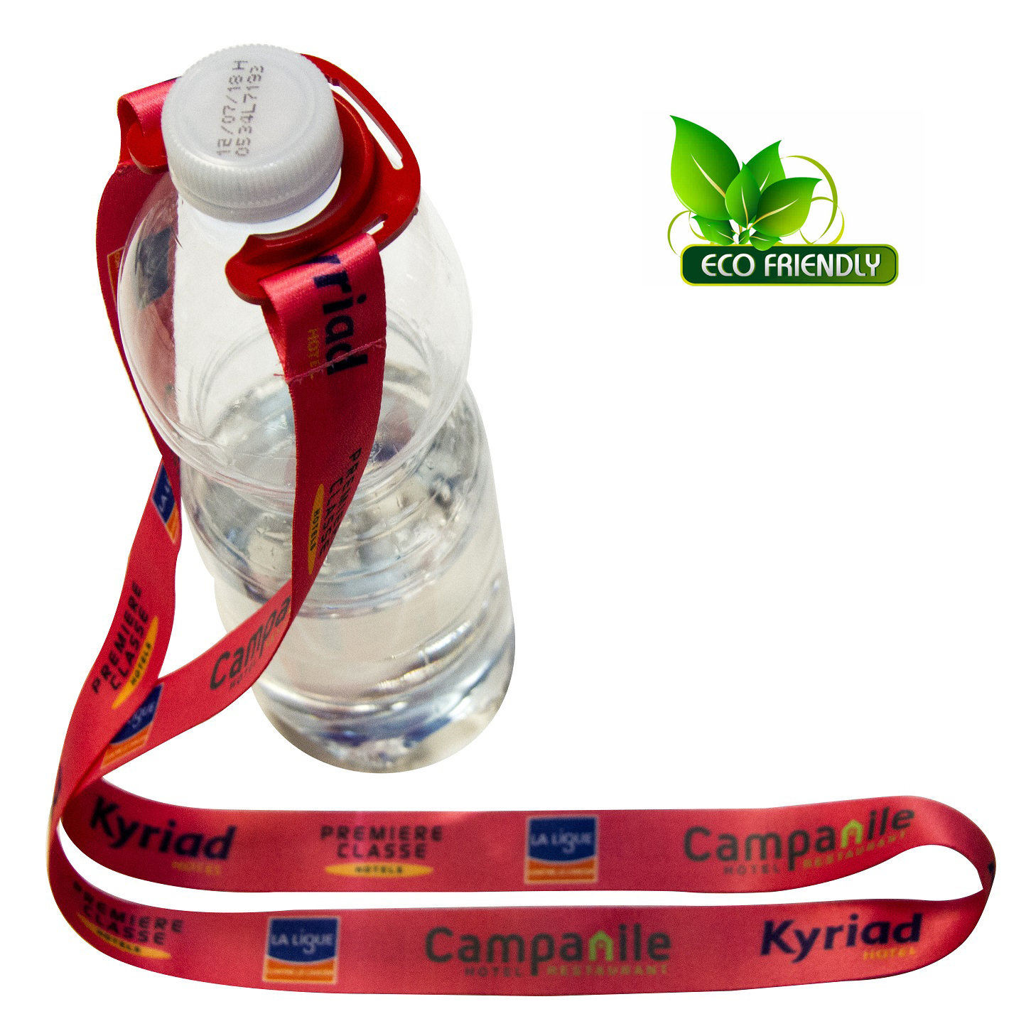 I nostri lanyards porta bottiglia da 20 o 25 mm di larghezza, sono provvisti di gancio in plastica disponibile in diversi colori per l’inserimento del collo della bottiglia in PET.