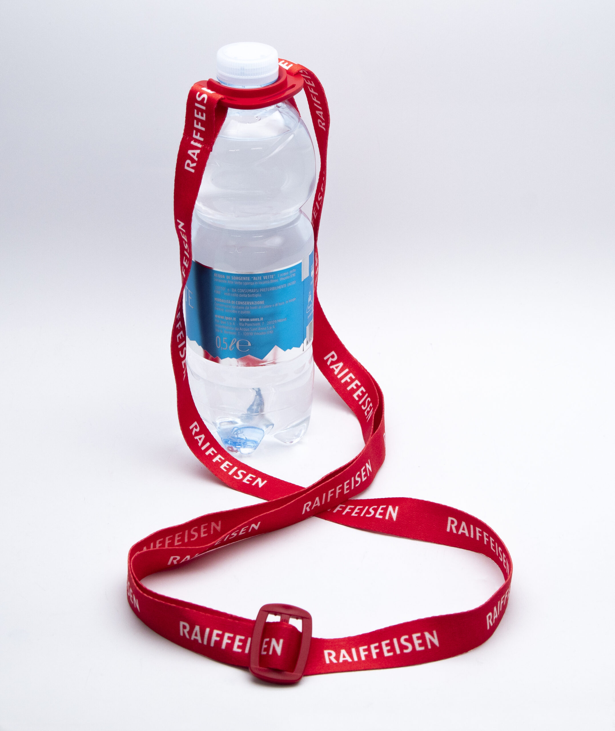 Mai più mani impegnate con i nastri porta bottiglia personalizzati su due lati, ideali per congressi, eventi all’aria aperta, gite scolastiche, eventi sportivi, musicali o fieristici ed escursioni.