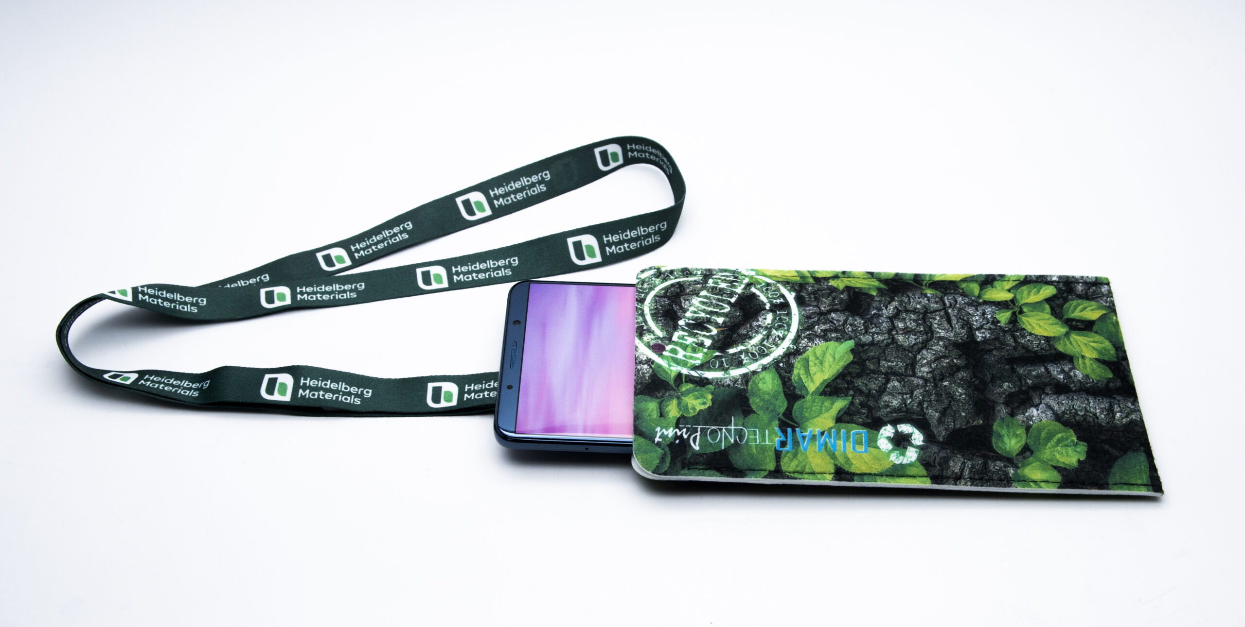La soluzione più eco-friendly dei nastri porta telefono è costituita da un laccetto arricchito da una custodia porta cellulare in feltro di poliestere riciclato, interamente personalizzata utilizzando inchiostri Azo-free, che rappresenta una soluzione sostenibile in grado di garantire la salvaguardia dell’ambiente.