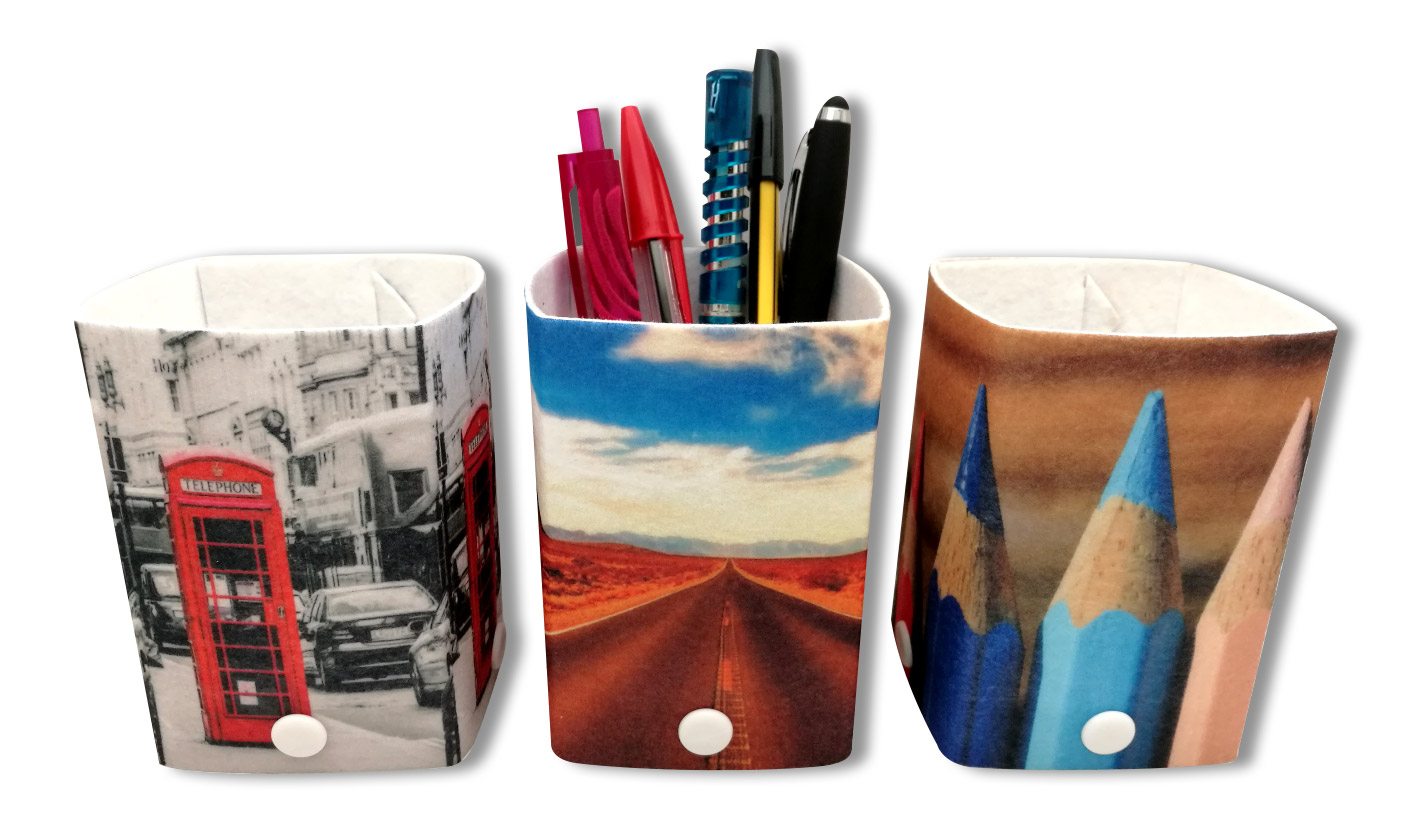 - Stile: oltre alla sua funzione organizzativa, il porta penne può essere un elemento di design, grazie alla stampa in sublimazione transfer che permette di creare articoli sempre nuovi, con uno stile più moderno o minimalista o decorativo, adatti a qualsiasi ambiente lavorativo o domestico.