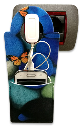 Il porta cellulare da presa viene prodotto utilizzando il feltro di poliestere, ottenuto da materie prime riciclate, contribuendo così alla sostenibilità dell’ambiente. È un materiale leggero e resistente all’usura e agli strappi e, cosa più importante, è fabbricato in Italia. Essendo realizzato con fibre di poliestere, questa tipologia di feltro è facilmente personalizzabile in sublimazione transfer e questo ci consente di produrre un supporto ricarica cellulare per aziende, customizzato su tutta la superfice con il logo, slogan e/o messaggio che si vuole promuovere. La stampa supporto ricarica cellulare personalizzato con logo si distingue per i colori brillanti, dettagli nitidi e un’ottima resa visiva; elementi fondamentali per ogni campagna promozionale di successo.