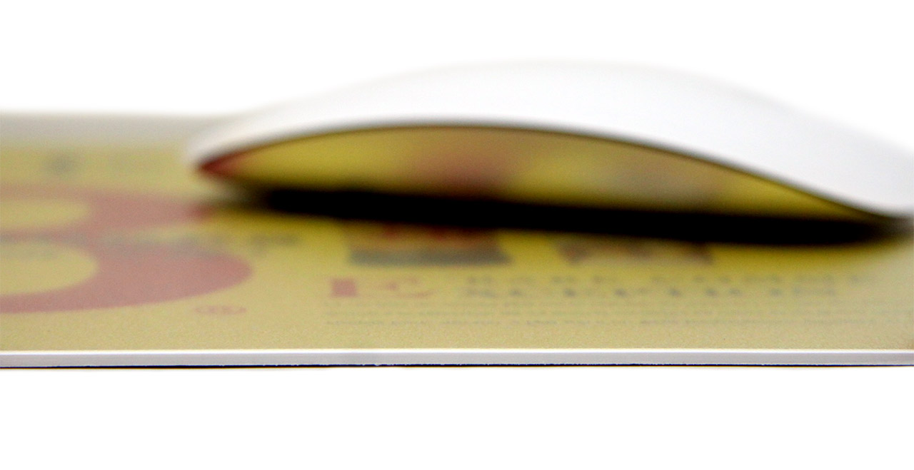 tappetini mouse termosaldati. Il nome deriva dalla tecnica utilizzata per unire ad alta frequenza la chiara base antiscivolo con la superficie in pvc ruvida e antistatica.